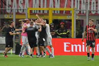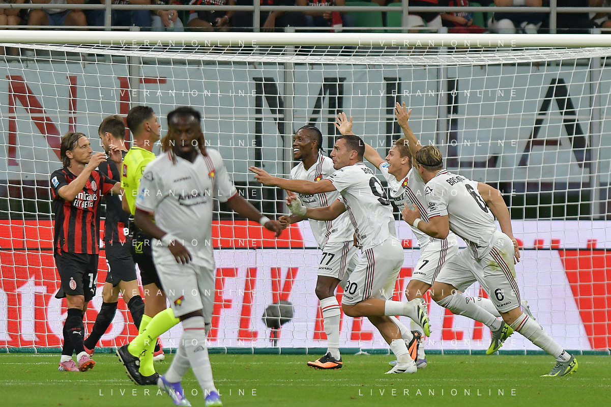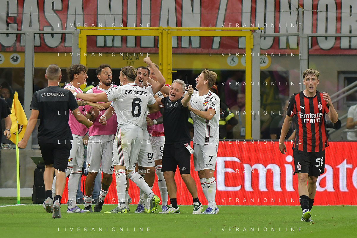 Milano 23.08.2025 Stadio Giuseppe Meazza @Manuela Viganti /Ag. Aldo Liverani sas Milan vs Cremonese Campionato Calcio Serie A Enilive 2025/2026 1a giornata Nella foto: esultanza cremonese dopo il gol di federico bonazzoli