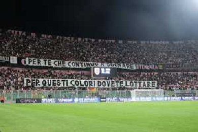 Stricione dedicato a Giangiacomo Magnani dai tifosi del Palermo durante la partita Palermo vs Reggiana di Serie B 25/26 presso lo Stadio Renzo Barbera di Palermo il 23/08/25 ©Federico Serra - AGENZIA ALDO LIVERANI SAS