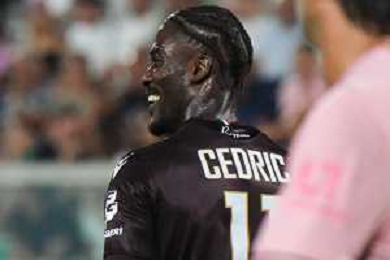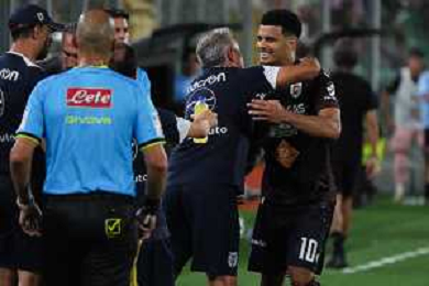 Cedric Gondo in azione durante la partita Palermo vs Reggiana di Serie B 25/26 presso lo Stadio Renzo Barbera di Palermo il 23/08/25 ©SERRA FEDERICO - AGENZIA ALDO LIVERANI SAS