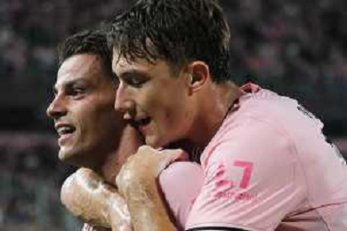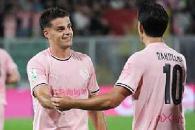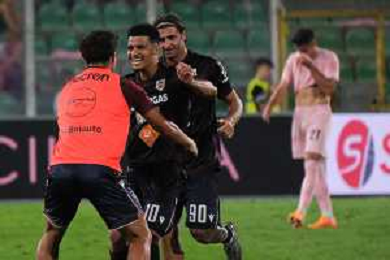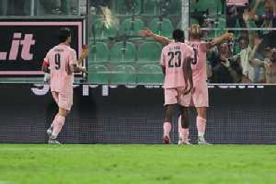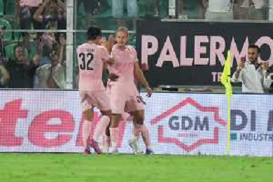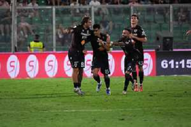 Il Palermo esulta per il suo gol durante la partita Palermo vs Reggiana di Serie B 25/26 presso lo Stadio Renzo Barbera di Palermo il 23/08/25 ©Federico Serra - AGENZIA ALDO LIVERANI SAS