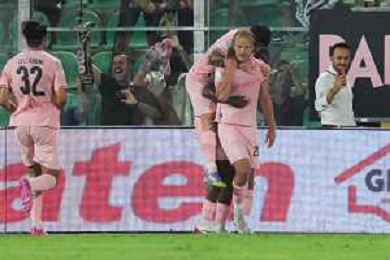 Esultanza Palermo al gol di Joel Pohjanpalo durante la partita Palermo vs Reggiana di Serie B 25/26 presso lo Stadio Renzo Barbera di Palermo il 23/08/25 ©SERRA FEDERICO - AGENZIA ALDO LIVERANI SAS