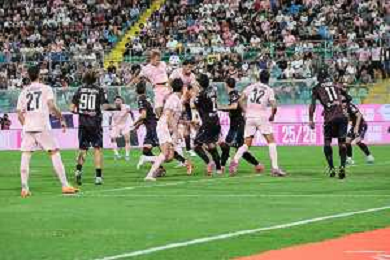 Azione da calcio d'angolo durante partita Palermo vs Reggiana di Serie B 25/26 presso lo Stadio Renzo Barbera di Palermo il 23/08/25 ©SERRA FEDERICO - AGENZIA ALDO LIVERANI SAS
