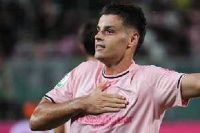 Matteo Brunori in azione durante la partita Palermo vs Reggiana di Serie B 25/26 presso lo Stadio Renzo Barbera di Palermo il 23/08/25 ©Federico Serra - AGENZIA ALDO LIVERANI SAS