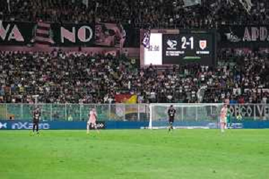 Tifosi Palermo - Tabellone con risultato 2-1 Palermo vs Reggiana di Serie B 25/26 presso lo Stadio Renzo Barbera di Palermo il 23/08/25 ©Federico Serra - AGENZIA ALDO LIVERANI SAS