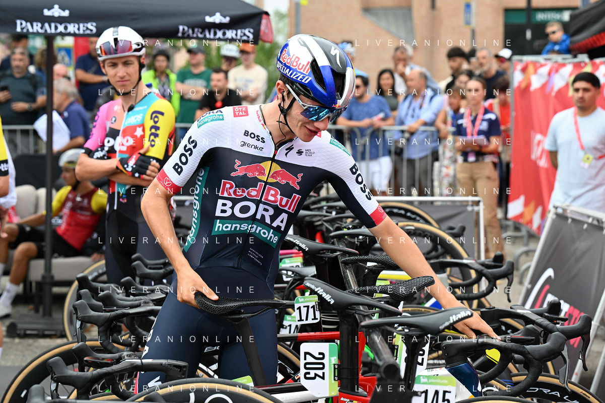 24-08-2025 Vuelta A Espana; Tappa 02 Alba - Limone Piemonte; 2025, Red Bull - Bora Hansgrohe; Pellizzari, Giulio; Alba; ©SIROTTI - AGENZIA ALDO LIVERANI SAS