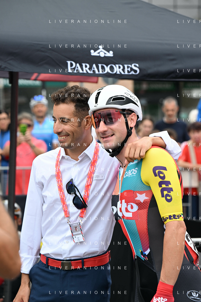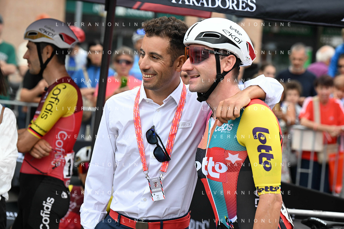 24-08-2025 Vuelta A Espana; Tappa 02 Alba - Limone Piemonte; 2025, Lotto; Viviani, Elia; Aru, Fabio; Alba; ©SIROTTI - AGENZIA ALDO LIVERANI SAS