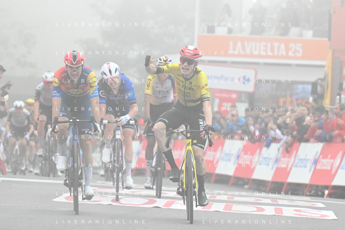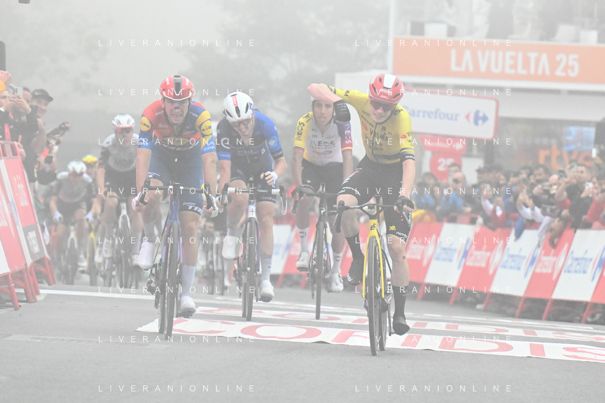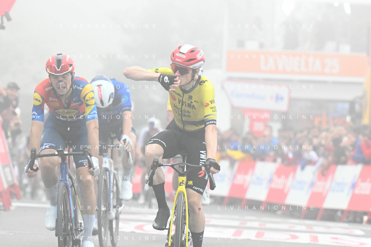 24-08-2025 Vuelta A Espana; Tappa 02 Alba - Limone Piemonte; 2025, Visma - Lease A Bike; 2025, Lidl - Trek; Vingegaard, Jonas; Ciccone, Giulio; Limone Piemonte; ©SIROTTI - AGENZIA ALDO LIVERANI SAS