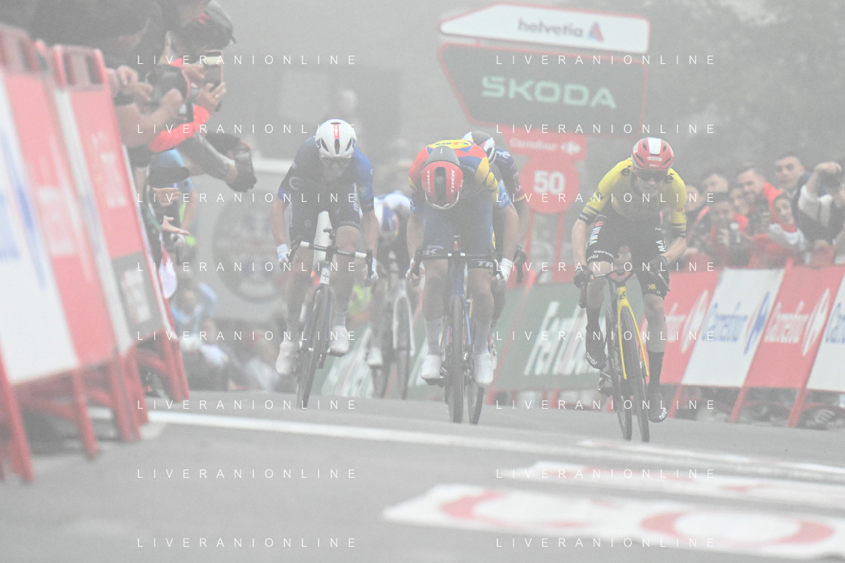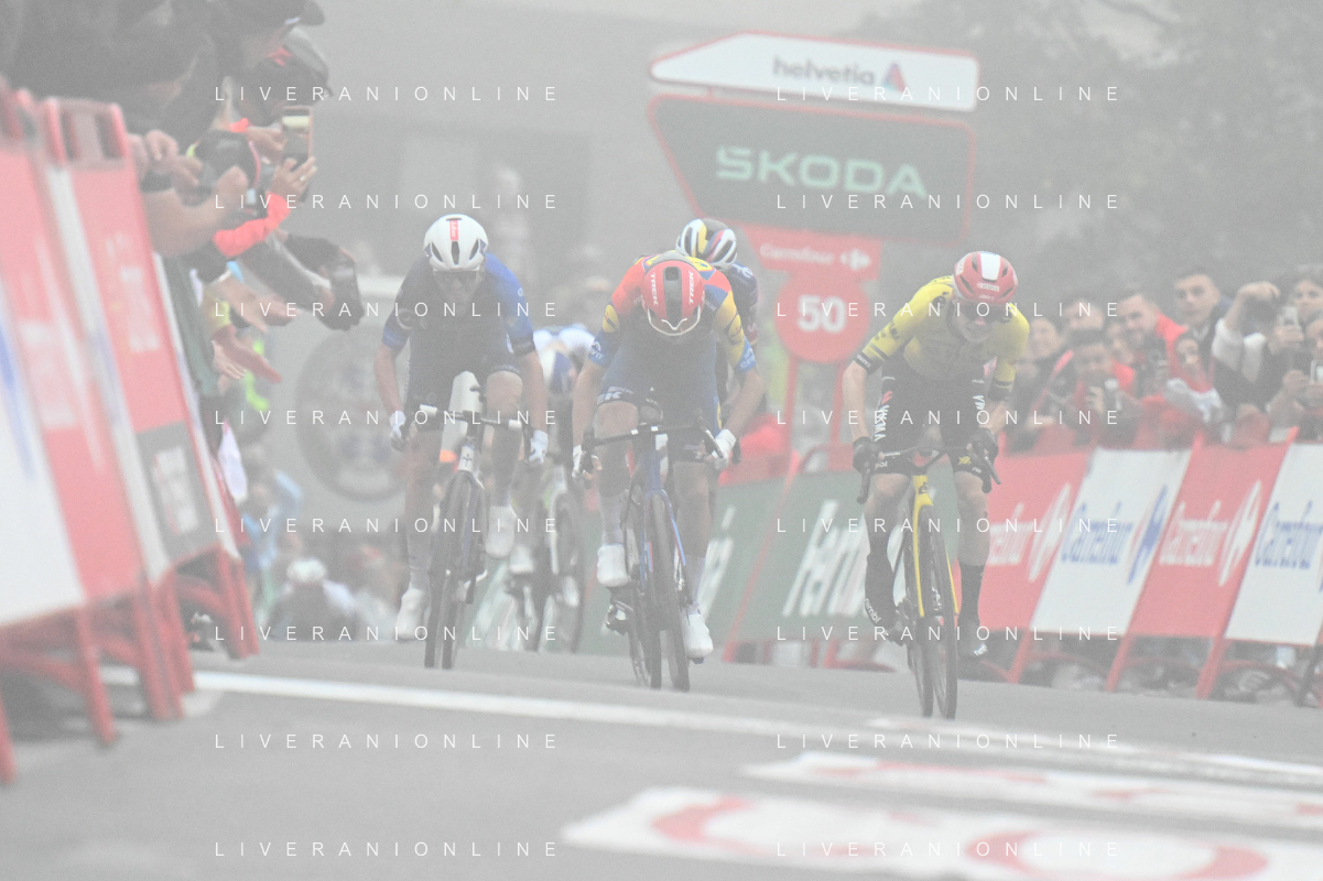 24-08-2025 Vuelta A Espana; Tappa 02 Alba - Limone Piemonte; 2025, Visma - Lease A Bike; 2025, Lidl - Trek; 2025, Groupama - Fdj; Vingegaard, Jonas; Ciccone, Giulio; Gaudu, David; Limone Piemonte; ©SIROTTI - AGENZIA ALDO LIVERANI SAS