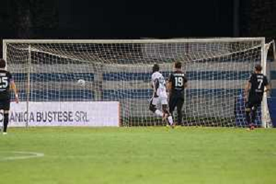 TVRCOR Pro Patria vs Pro Vercelli 1a giornata Campionato Calcio Serie C Lega Pro – Busto Arsizio (VA) 24-08-2025 Nella foto rigore e goal di Ferdinando Mastroianni Busto Arsizio 24-08-2025 Stadio Carlo Speroni Campionato Calcio Serie C Lega Pro – foto Roberta Corradin/ Agenzia Aldo Liverani sas