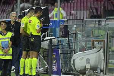 25 08 2025 - Salerno. Stadio Arechi. Serie C. Salernitana-Siracusa Nella foto l'arbitro Marco Di Loreto consulta l'FVS Foto Giuseppe Cuozzo/Agenzia Liverani