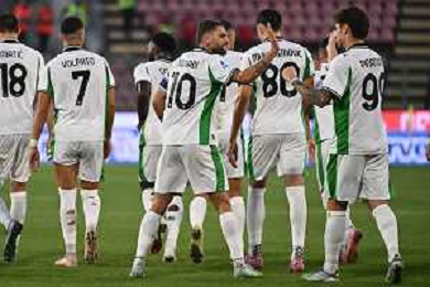 TVRG Cremonese vs Sassuolo nella foto giocatori Sassuolo esultanza dopo il gol del 2 a 2 Cremona 29-08-2025 Stadio Giovanni Zini Cremonese vs Sassuolo Campionato Serie A Enilive - 2a giornata foto Roberto Garavaglia/Agenzia Aldo Liverani sas