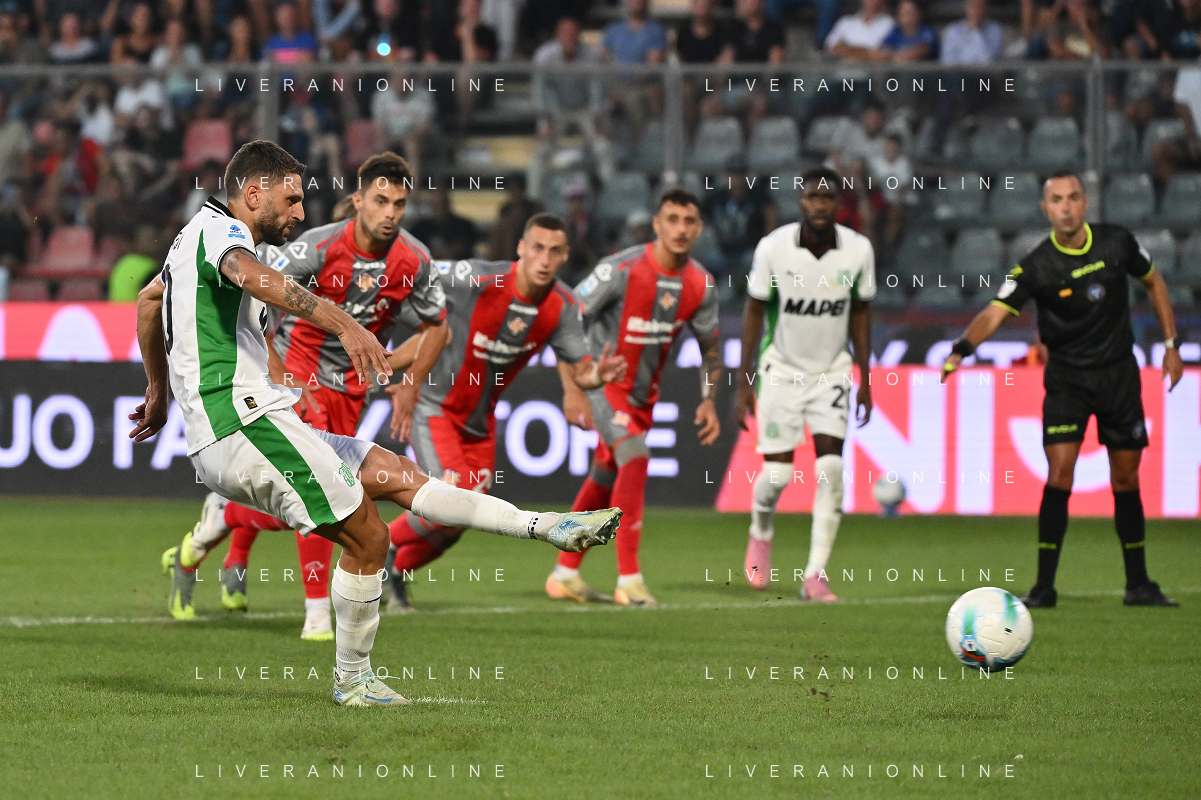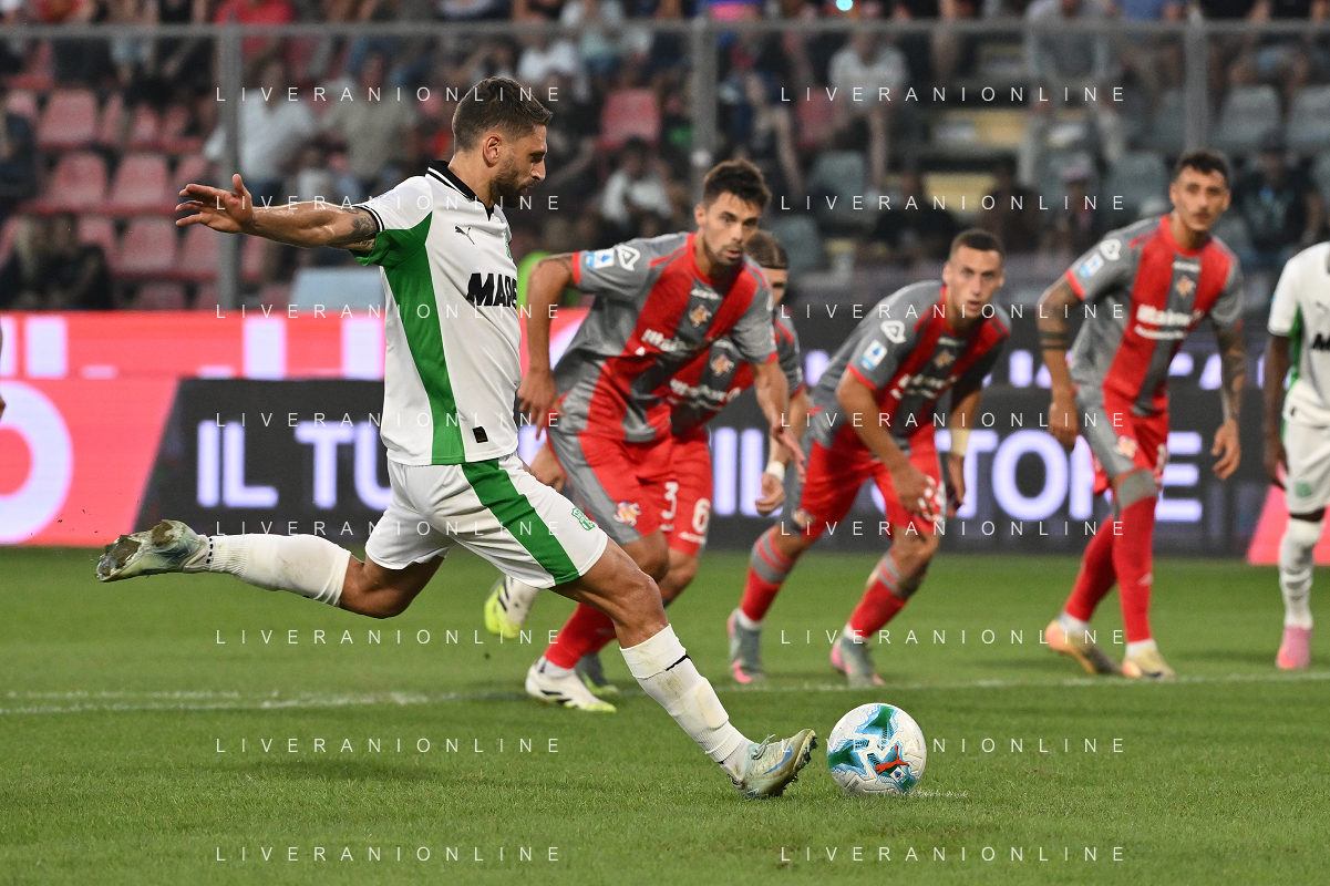 TVRG Cremonese vs Sassuolo nella foto Domenico Berardi (Sassuolo) segna il gol del 2 a 2 Cremona 29-08-2025 Stadio Giovanni Zini Cremonese vs Sassuolo Campionato Serie A Enilive - 2a giornata foto Roberto Garavaglia/Agenzia Aldo Liverani sas
