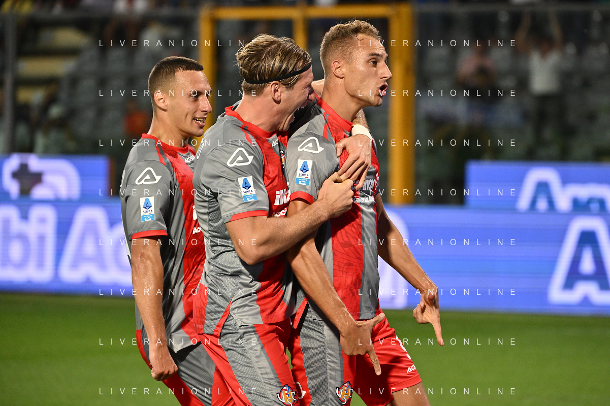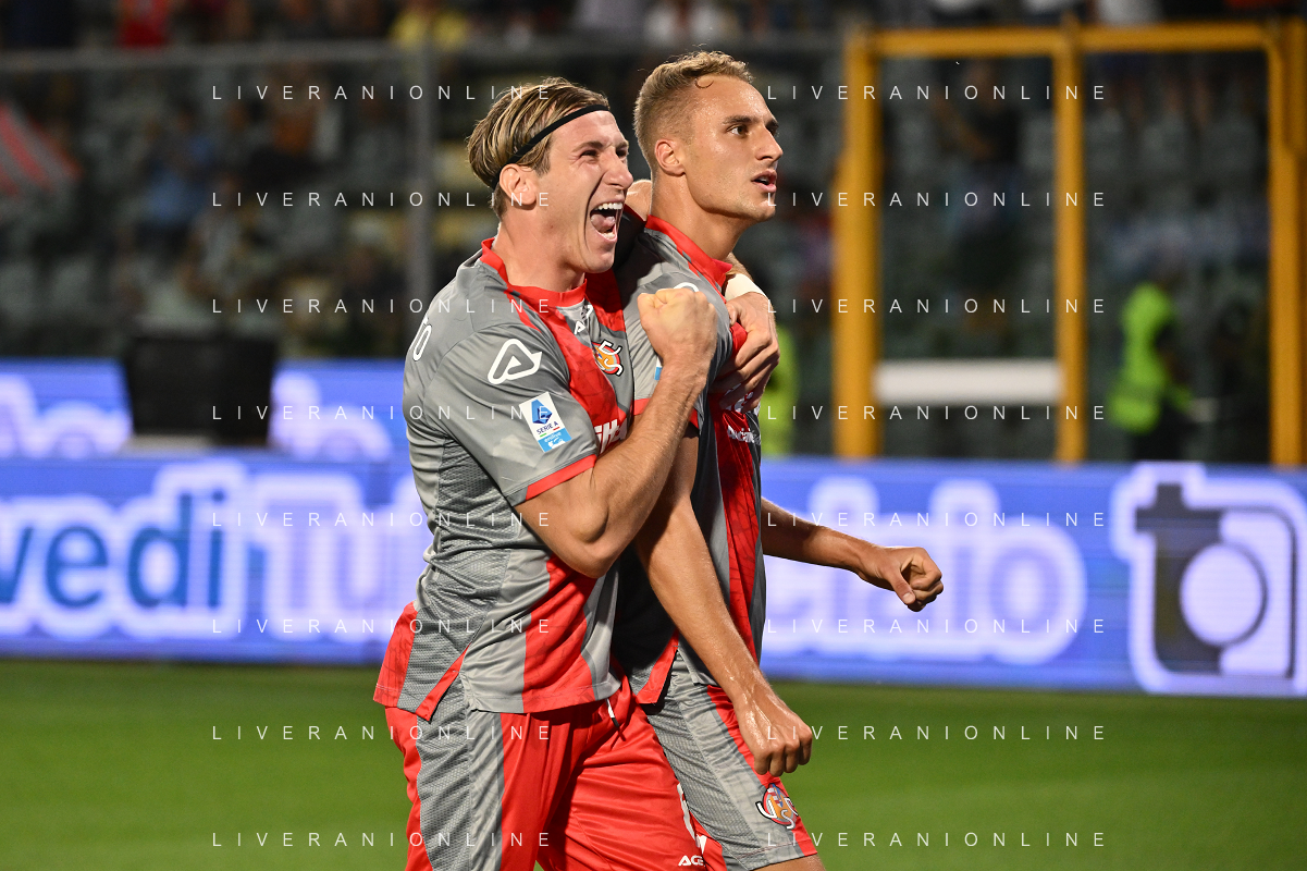 TVRG Cremonese vs Sassuolo nella foto Federico Baschirotto (Cremonese) e Manuel De Luca (Cremonese) esultanza dopo il gol del 3 a 2 Cremona 29-08-2025 Stadio Giovanni Zini Cremonese vs Sassuolo Campionato Serie A Enilive - 2a giornata foto Roberto Garavaglia/Agenzia Aldo Liverani sas
