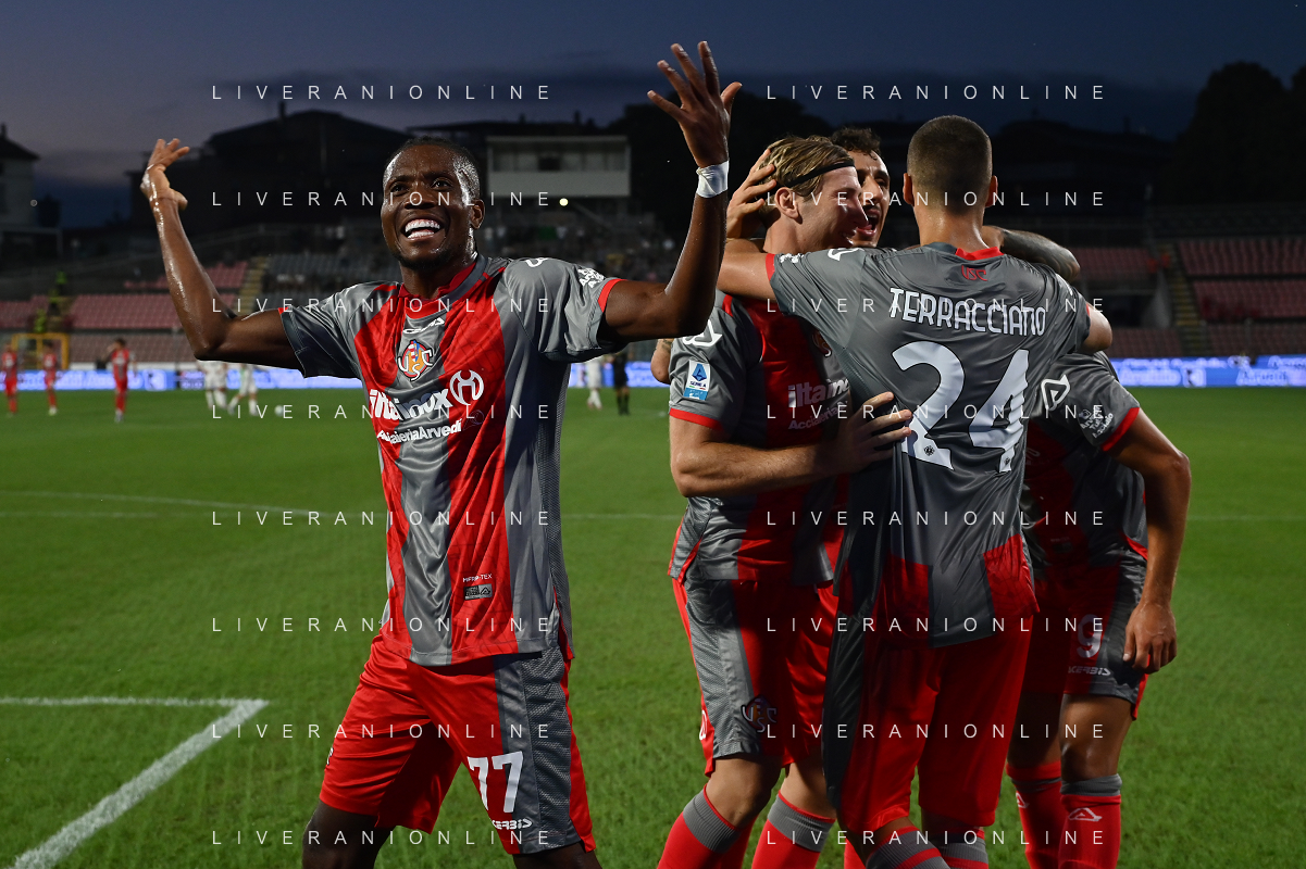 TVRG Cremonese vs Sassuolo nella foto David Okereke (Cremonese) esultanza dopo il gol del 3 a 2 di Manuel De Luca (Cremonese) Cremona 29-08-2025 Stadio Giovanni Zini Cremonese vs Sassuolo Campionato Serie A Enilive - 2a giornata foto Roberto Garavaglia/Agenzia Aldo Liverani sas