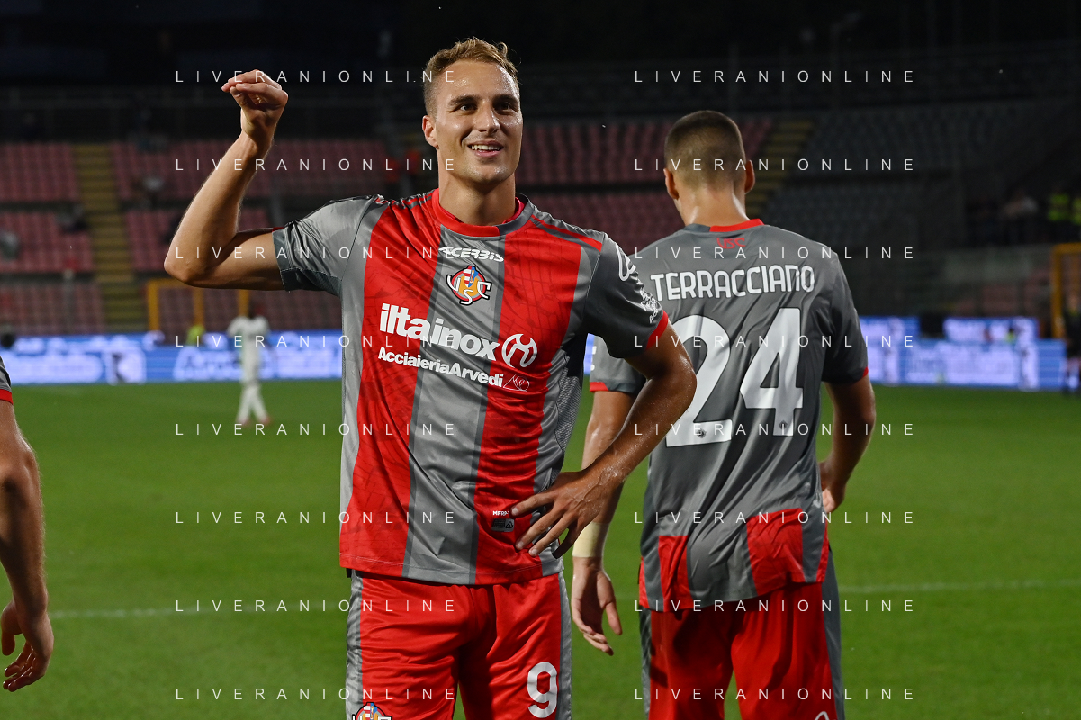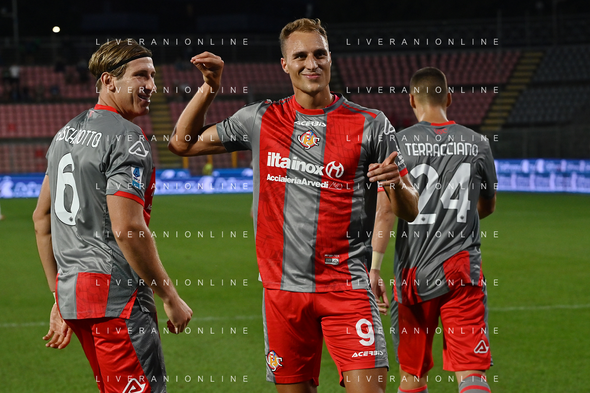 TVRG Cremonese vs Sassuolo nella foto Manuel De Luca (Cremonese) a DX esultanza dopo il gol del 3 a 2 Cremona 29-08-2025 Stadio Giovanni Zini Cremonese vs Sassuolo Campionato Serie A Enilive - 2a giornata foto Roberto Garavaglia/Agenzia Aldo Liverani sas