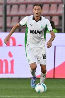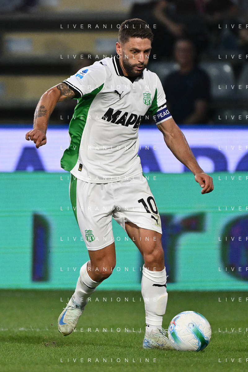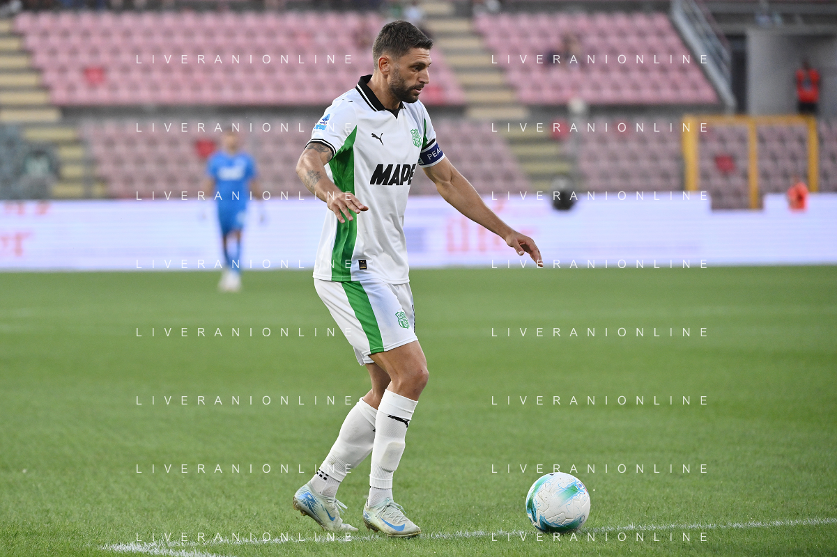 Domenico Berardi of US Sassuolo play the ball during US Cremonese vs US Sassuolo, 2° Serie A Enilive 2025-26 game at Renato Zini stadium in Cremona (CR), Italy, on August 28, 2025. (Photo by Davide Casentini) AG ALDO LIVERANI SAS