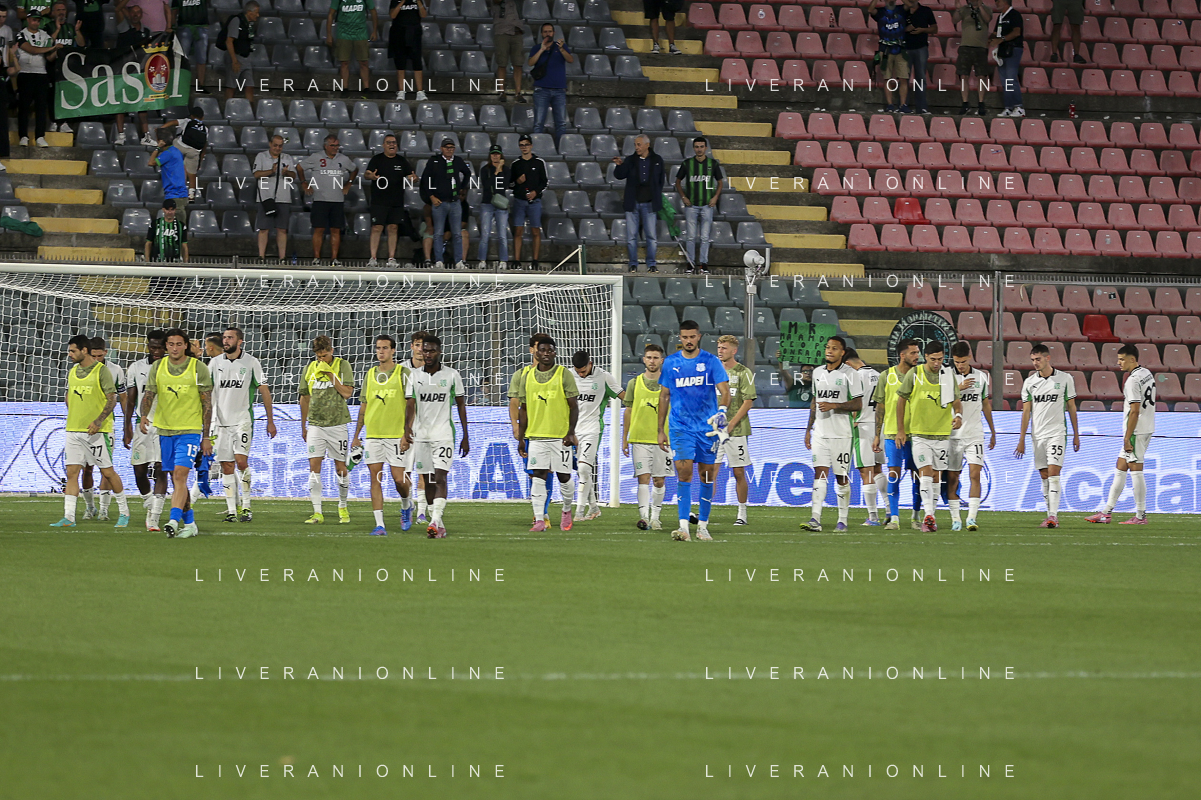 Sassuolo team expresses disappointment at the end of US Cremonese vs US Sassuolo, 2° Serie A Enilive 2025-26 game at Renato Zini stadium in Cremona (CR), Italy, on August 28, 2025. (Photo by Davide Casentini) AG ALDO LIVERANI SAS