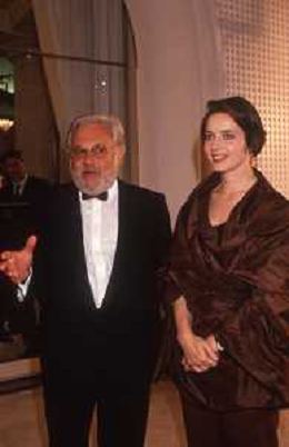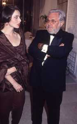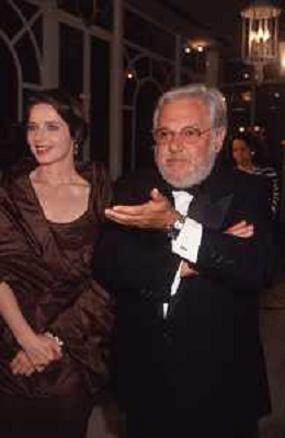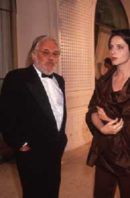 DIAP-RETROSPETTIVA ISABELLA ROSSELLINI ATTRICE NELLA FOTO ISABELLA ROSSELLINI CON PAOLO VILLAGGIO A CANNES NELL'ANNO 1990 AG ALDO LIVERANI SAS