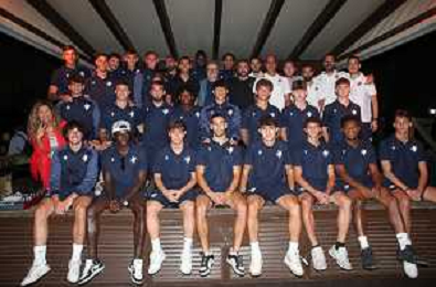 IMOLA 04 09 2025 IMOLESE CALCIO SERIE D PRESENTAZIONE IMOLESE CALCIO FUTSAL,IMOLESE CALCIO FEMMINILE E IMOLESE CALCIO SERIE D,PRESENTAZIONE ANCHE LE NUOVE MAGLIE DELL'IMOLESE CALCIO SERIE D NELLA FOTO SQUADRA IMOLESE CALCIO SERIE D ALLENATORE IVAN MARCELO POTEPAN E ASSESSORE DEL COMUNE DI IMOLA PIERANGELO RAFFINI FOTO GIANNI SANNA-AG ALDO LIVERANI SAS