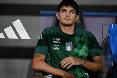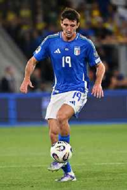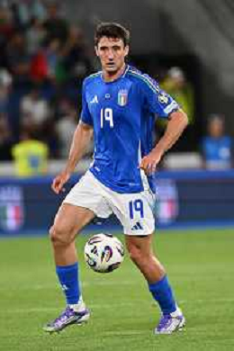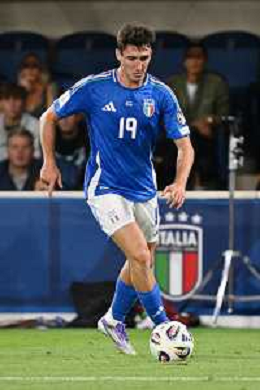 Riccardo Calafiori of Italy during warmup before Italy vs Estonia, European Qualifier, 3nd group match, game at New Balance stadium in Bergamo (BG), Italy, on September 05, 2025. (Photo by Davide Casentini)- AGENZIA ALDO LIVERANI SAS