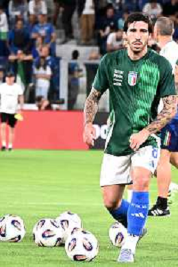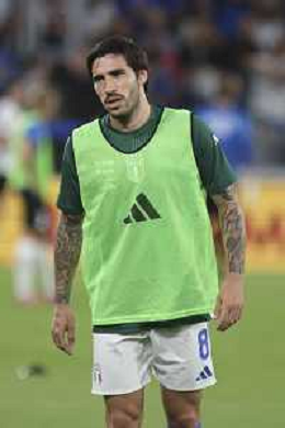 Sandro Tonali of Italy during warmup before Italy vs Estonia, European Qualifier, 3nd group match, game at New Balance stadium in Bergamo (BG), Italy, on September 05, 2025. (Photo by Davide Casentini)- AGENZIA ALDO LIVERANI SAS