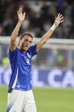 Mateo Retegui of Italy applaud the fans following the final whistle during Italy vs Estonia, European Qualifier, 3nd group match, game at New Balance stadium in Bergamo (BG), Italy, on September 05, 2025. (Photo by Davide Casentini)- AGENZIA ALDO LIVERANI SAS