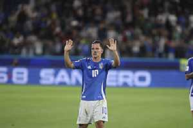 Giacomo Raspadori of Italy applaud the fans following the final whistle during Italy vs Estonia, European Qualifier, 3nd group match, game at New Balance stadium in Bergamo (BG), Italy, on September 05, 2025. (Photo by Davide Casentini)- AGENZIA ALDO LIVERANI SAS