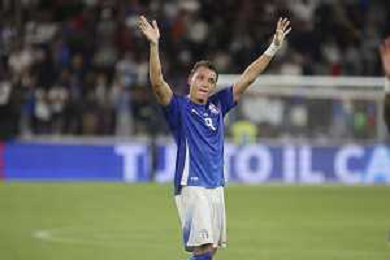 Matteo Retegui of Italy applaud the fans following the final whistle during Italy vs Estonia, European Qualifier, 3nd group match, game at New Balance stadium in Bergamo (BG), Italy, on September 05, 2025. (Photo by Davide Casentini)- AGENZIA ALDO LIVERANI SAS