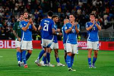 TVEM September 05, 2025 Bergamo, Italy - Italy vs Estonia - European Qualifiers FIFA World Cup 2026 Matchday 5 - Atleti Azzurri d’Italia Stadium. In the pic: the Italy players applauds fans ©TVEM Emmanuele Mastrodonato - AGENZIA ALDO LIVERANI SAS