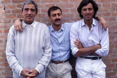 DIAP-RETROSPETTIVA WALTER CHIARI ATTORE NELLA FOTO WALTER CHIARI A VENEZIA NELL'ANNO 1986 CON LUCA BARBARESCHI E MASSIMO MAZZUCCO AG ALDO LIVERANI SAS