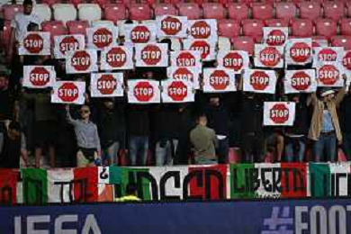 TVRG Israele vs Italia nella foto tifosi Italia durante l'inno di Israele Debrecen (HUN) 08-09-2025 Nagyerdei Stadion Israele vs Italia Qualificazioni Mondiali 2026 Gruppo I - 6a giornata foto Roberto Garavaglia/Agenzia Aldo Liverani sas