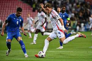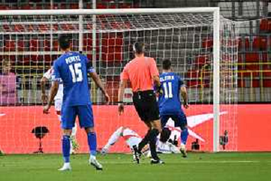 TVRG Israele vs Italia nella foto Moise Kean (Italia) segna il gol del 2 a 2 Debrecen (HUN) 08-09-2025 Nagyerdei Stadion Israele vs Italia Qualificazioni Mondiali 2026 Gruppo I - 6a giornata foto Roberto Garavaglia/Agenzia Aldo Liverani sas