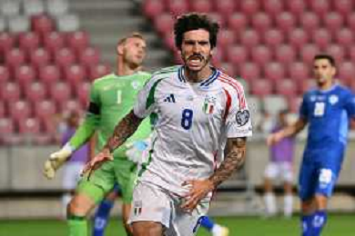 TVRG Israele vs Italia nella foto Manuel Locatelli (Italia) autogol per l'1 a 0 Israele Debrecen (HUN) 08-09-2025 Nagyerdei Stadion Israele vs Italia Qualificazioni Mondiali 2026 Gruppo I - 6a giornata foto Roberto Garavaglia/Agenzia Aldo Liverani sas