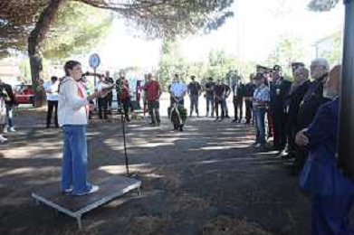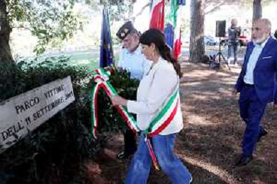 IMOLA 11 09 2025 CERIMONIA DI COMMEMORAZIONE DELLE VITTIME DEGLI ATTENTATI DELL'11 SETTEMBRE 2001 CON DEPOSIZIONE DI UNA CORONA ALLA LAPIDE E RICORDO NELLA FOTO VICE SINDACA DEL COMUNE DI IMOAL ELISA SPADA ©SANNA - AGENZIA ALDO LIVERANI SAS