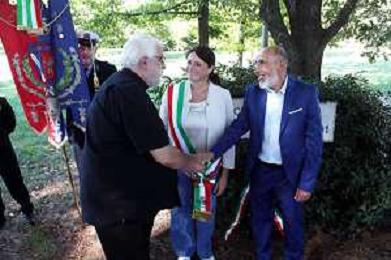 IMOLA 11 09 2025 CERIMONIA DI COMMEMORAZIONE DELLE VITTIME DEGLI ATTENTATI DELL'11 SETTEMBRE 2001 CON DEPOSIZIONE DI UNA CORONA ALLA LAPIDE E RICORDO NELLA FOTO COLONELLO FRAQNCO CAMAGGI E VICE SINDACO ELISA SPADA ©SANNA - AGENZIA ALDO LIVERANI SAS