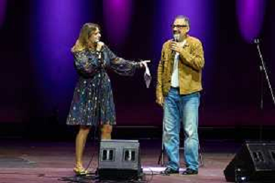 Roma 10 Settembre 2025 Michela Giroud in ‘Mi hanno gettata in mezzo ai lupi e non ne sono uscita capobranco’ Live alla Cavea dell'Auditorium Parco della Musica di Roma. Nella foto: Michela Giraud, Dario Brunori Foto Credit: Andrea Bracaglia- AGENZIA ALDO LIVERANI SAS