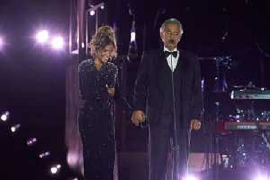 Citta' del Vaticano 13 Settembre 2025 Celebrita' internazionali cantano durante l'evento "Grace for the world" Nella foto: Andrea Bocelli, Karol G Foto Andrea Bracaglia-Ag Aldo Liverani sas