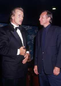 DIAP-RETROSPETTIVA RUTGER HAUER ATTORE NELLA FOTO RUTGER HAUER A CANNES NELL'ANNO 1988 CON IL REGISTA PETER GRENAWAY AG ALDO LIVERANI SAS