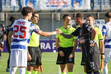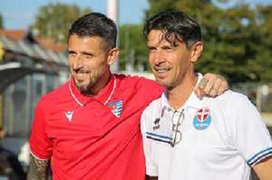 TVRCOR – Pro Patria vs Novara – 4a giornata Campionato Calcio Serie C Lega Pro Busto Arsizio (VA) 14-09-2025 Stadio Carlo Speroni nella foto saluto tra i mister, allenatore Andrea Zanchetta (Novara) e Leandro Greco (Pro Patria) ©TVRCOR Corradin Roberta - AGENZIA ALDO LIVERANI SAS