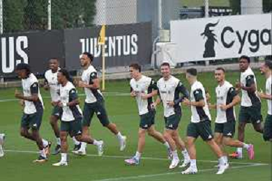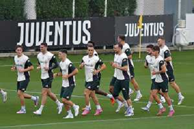 TVMV-Torino 15.09.2025 Continassa © Manuela Viganti/Agenzia Aldo Liverani Allenamento Juventus Rifinitura partita Champions League Juventus vs Borussia Dortmund Nella foto: il gruppo durante la rifinitura ©TVMV Viganti Manuela - AGENZIA ALDO LIVERANI SAS