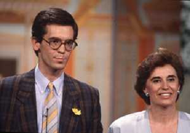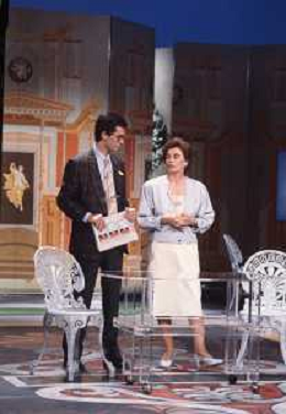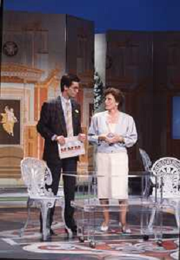 DIAP-RETROSPETTIVA ALESSANDRO CECCHI PAONE PRESENTATORE TELEVISIVO NELLA FOTO ALESSANDRO CECCHI PAONE CON PAOLA GIOVETTI NELL'ANNO 1985 NELLA TRASMISSIONE TELEVISIVA “MISTERO“ AG ALDO LIVERANI SAS