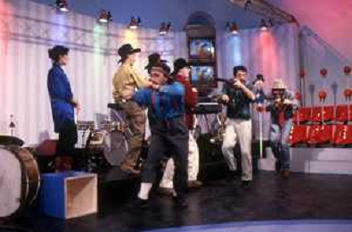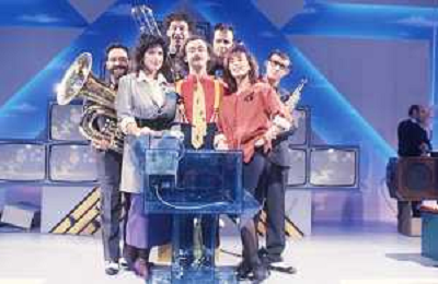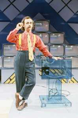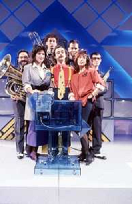 DIAP-RETROSPETTIVA MAURIZIO NICHETTI ATTORE NELLAFOTO MAURIZIO NICHETTI A MILANO NELL'ANNO 1986 NELLA TRASMISSIONE TELEVISIVA “PISTA “ CON DANIELA GOGGI E ORSETTA GREGORETTI E LA BANDA OSIRIS AG ALDO LIVERANI SAS