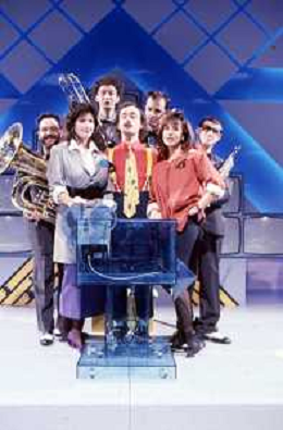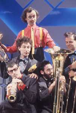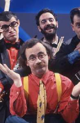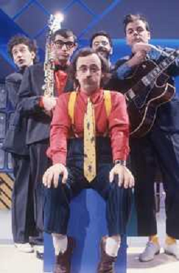 DIAP-RETROSPETTIVA MAURIZIO NICHETTI ATTORE NELLAFOTO MAURIZIO NICHETTI A MILANO NELL'ANNO 1986 NELLA TRASMISSIONE TELEVISIVA “PISTA “CON LA BANDA OSIRIS AG ALDO LIVERANI SAS