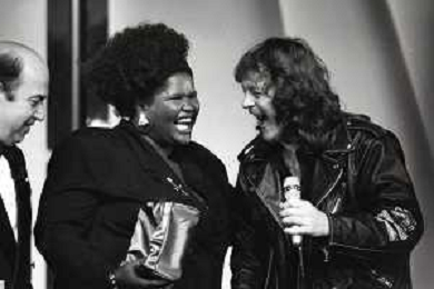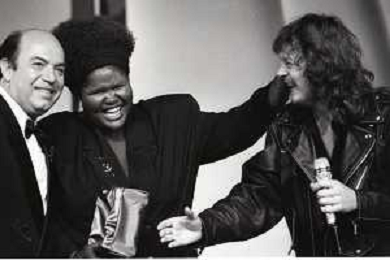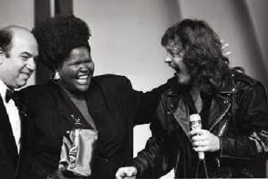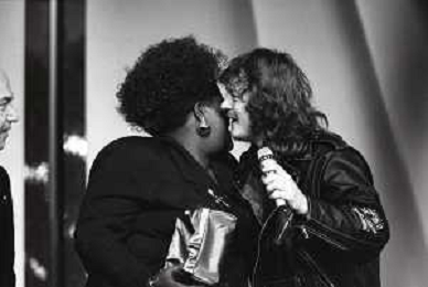 NEG-RETROSPETTIVA ZUCCHERO FORNACIARI CANTANTE NELLA FOTO ZUCCHERO FORNACIARI CON LIZA HUNT E LINO BANFI ALLA VELA D'ORO NELL'ANNO 1988 AG ALDO LIVERANI SAS