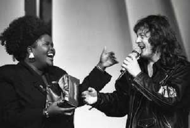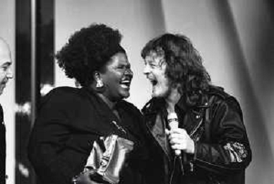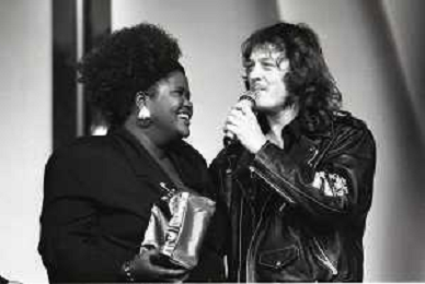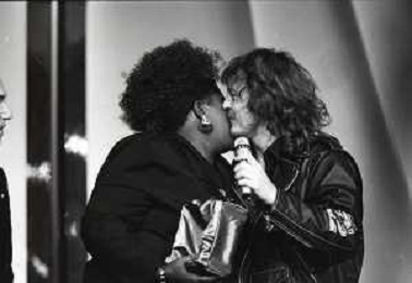 NEG-RETROSPETTIVA ZUCCHERO FORNACIARI CANTANTE NELLA FOTO ZUCCHERO FORNACIARI E LIZA HUNT ALLA VELA D'ORO NELL'ANNO 1988 AG ALDO LIVERANI SAS