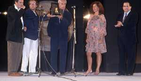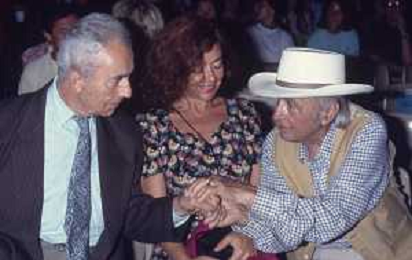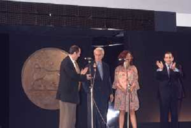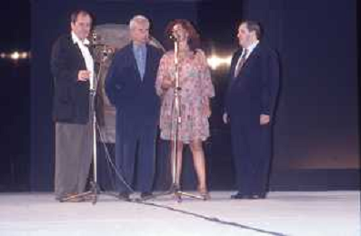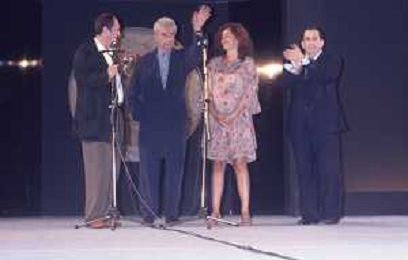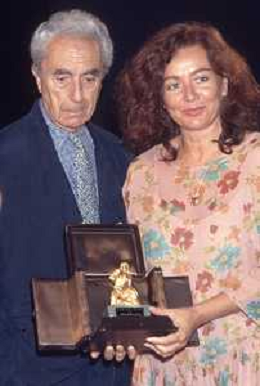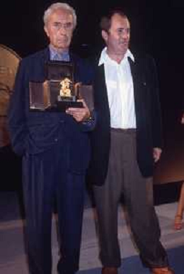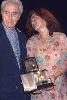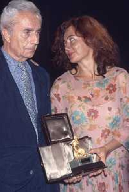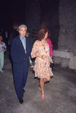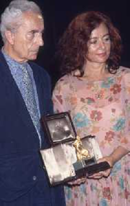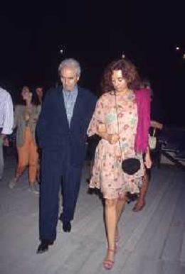DIAP-RETROSPETTIVA MICHELANGELO ANTONIONI REGISTA NELLA FOTO MICHELANGELO ANTONIONI A TAORMINA NELL'ANNO 1991 CON LA MOGLIE ENRICA FICO AG ALDO LIIVERANI SAS