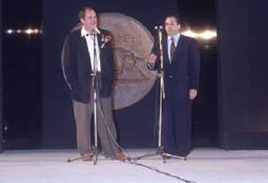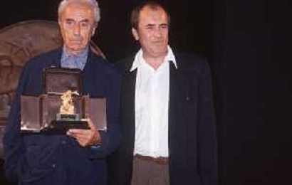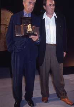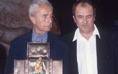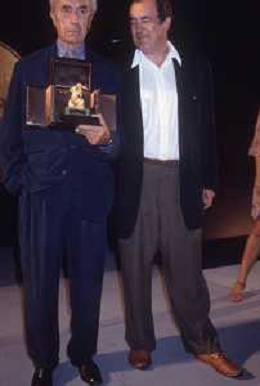 DIAP-RETROSPETTIVA MICHELANGELO ANTONIONI REGISTA NELLA FOTO MICHELANGELO ANTONIONI A TAORMINA NELL'ANNO 1991 CON BERNARDO BERTOLUCCI AG ALDO LIIVERANI SAS
