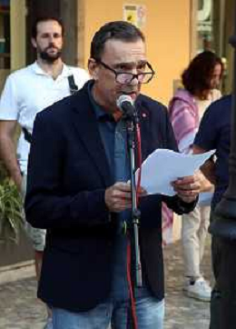 IMOLA 19 09 2025 CGIL IMOLA SI MOBILITA' CONTRO LA L'INVASIONE ISRAELIANA A GAZA SCIOPERO E PRESIDIO IN PIAZZA DELL'ULIVO NELLA FOTO DISCORSO DI STEFANO MONI SEGRETARIO CGIL IMOLA ©SANNA - AGENZIA ALDO LIVERANI SAS