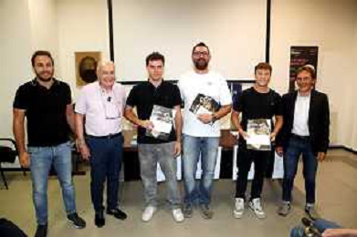 IMOLA 20 09 2025 IN OCCASIONE DEL SESSANTESIMO ANNIVERSARIO DEL DIPLOMA I DIPLOMATI DEL 1965 FESTEGGIANO LA RICORRENZA CONSEGNANDO TRE BORSE DI STUDIO AGLI STUDENTI ITIS MECCANICA DIPLOMATISI NEL 2025 CON 100/100 GIOVANNI BERTOZZI TOMMASO MEZZETTI E NICOLO' TOGNATI CON GLI EX ALLIEVI ANNO 1965 ©SANNA - AGENZIA ALDO LIVERANI SAS