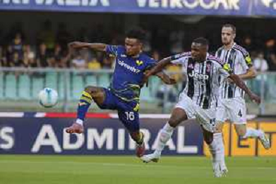 Gift Orban of Hellas Verona FC battle for the ball with Federico Gatti of Juventus FC during Hellas Verona FC vs Juventus FC, 4° Serie A Enilive 2025-26 game at Marcantonio Bentegodi stadium in Verona (VR), Italy, on September 20, 2025. (Photo by Davide Casentini)- AGENZIA ALDO LIVERANI